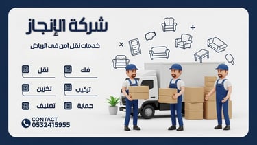 خدمات شركة الإنجاز لنقل العفش والأثاث في الرياض، الشركة المتخصصة في تقديم حلول نقل متكاملة للمنازل والمكاتب داخل جميع أحياء الرياض. نقدم خدمات احترافية تشمل النقل الآمن لجميع أنواع الأثاث، التغليف المتقن لحماية القطع من الخدوش والكسر، الفك والتركيب الكامل للأثاث بعد النقل، بالإضافة إلى خدمات التخزين الآمن والمجهز وفق أعلى معايير الجودة. تعتمد الشركة على فريق متخصص مدرّب ومعدات حديثة لضمان تجربة نقل سلسة وموثوقة مع الالتزام بالمواعيد وتقديم أفضل حلول تناسب احتياجات العملاء المختلفة. للحصول على خدمة احترافية ومتكاملة، تواصل مع شركة الإنجاز الآن على 0532415955.